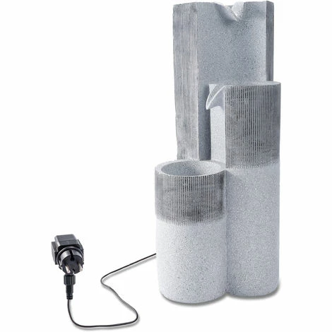 Der Wasserbrunnen Smart Fountain aus Polyresin ist Ihrem Garten, aber auch für Terrasse, Balkon, Wintergarten und das Haus geeignet. Seine drei Stelen aus hellgrauem Polyresin wirken geradlinig und geradezu klassisch. Das Wasser fließt dabei in einem geschlossenen Kreislauf: Es rinnt von der höchsten Stele bis hinunter in das Auffangbecken, das sich in der niedrigsten Stele befindet. Von dort wird es wieder nach oben gepumpt und der Kreis beginnt von Neuem. Für den Betrieb der Pumpe stecken Sie den Stecker des Netzteils einfach in eine ganz normale Steckdose.