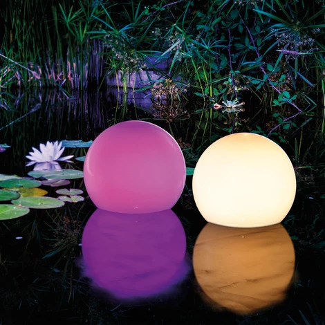 Für den Außeneinsatz bringen die zwei »Multi Color«-Leuchtkugeln ideale Voraussetzungen mit: Schlagfest und bestens abgedichtet, überstehen sie Wind und Wetter.