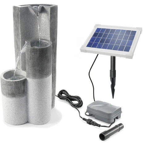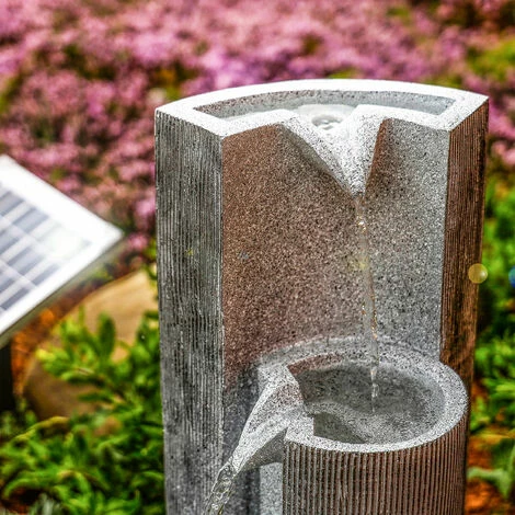 Der Solar Gartenbrunnen Smart Fountain mit Akku ist ein modern gestalteter Kaskadenbrunnen aus hellgrauem Polyresin. Das Wasser fließt dabei über drei Stelen in unterschiedlicher Höhe. Ist es in der untersten angelangt, wird es von der Pumpe in einem geschlossenen Kreislauf wieder nach oben befördert. Mit einem leistungsfähigen Solarpanel ausgestattet, können Sie den Gartenbrunnen Smart Fountain an jeder beliebigen Stelle Ihres Gartens aufstellen, vorausgesetzt, das Solarpanel bekommt tagsüber ausreichend Sonnenlicht.