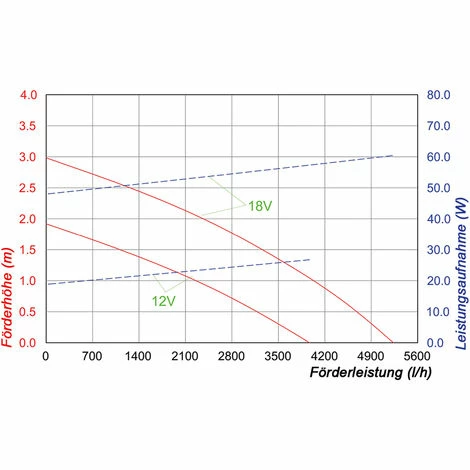 - Förderhöhe: Bis zu 1,8m (bei 12V) und 3m (bei 18V)