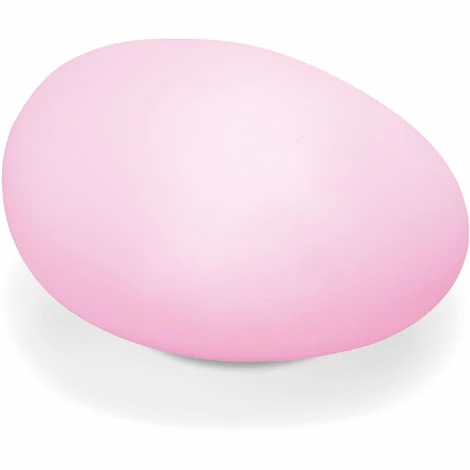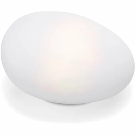 Das kantenlose, amorphe Design ist bewusst gewählt: Wie ein naturgeformter großer Kiesel präsentiert sich dieses moderne Lichtobjekt bei Tag.