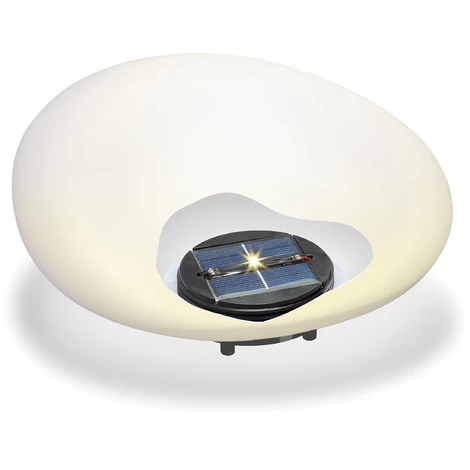 Setzen Sie den »Leuchtstein« an einen beliebigen, tags von der Sonne beschienenen Platz. Zwei mitgelieferte Erdspieße sorgen bei Bedarf für festen Halt. Die mattweiße Kunststoffhülle selbst ist robust und wetterfest.