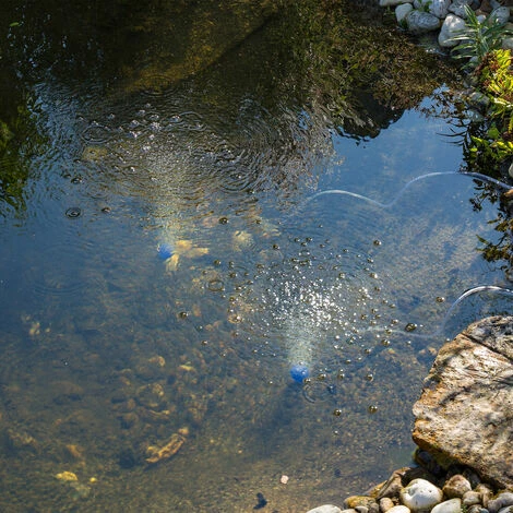 Besonders in Flachwasserzonen setzt die Sommerhitze dem biologischen Gleichgewicht Ihres Gartenteichs zu. Bei Wassertemperaturen über 25° C nimmt die Sauerstoffsättigung des Wassers ab. Biologische Reinigungsprozesse durch Mikroorganismen werden so behindert, es kommt zu einem verringerten Abbau überschüssiger Nährstoffe. Ein Solar-Teichbelüfter hilft, den Sauerstoffeintrag zu verbessern und unterstützt so die Selbstreinigung Ihres Teichs.