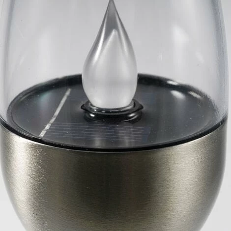 Die Solarleuchten Tayo sind klassisch-elegant und konzentrieren sich mit ihrem reduzierten Design ganz auf die leicht flackernde LED-Flamme in ihrem Inneren. Der Korpus der Leuchten aus Edelstahl-Basis und Schirm beschreibt eine schlanke ovale Form, die in ihrem länglichen Aufbau optisch über die bernsteinfarbene LED miteinander verbunden wird und damit Brücke schafft zwischen der kräftigen Farbe des Edelstahls und der Transparenz des Glases.